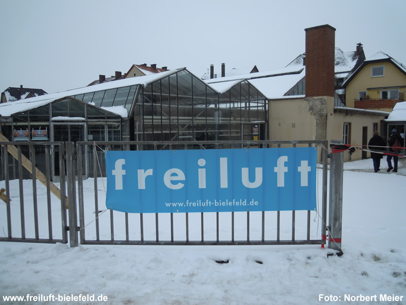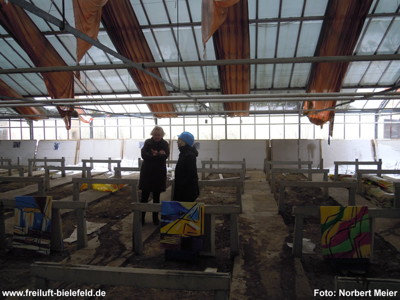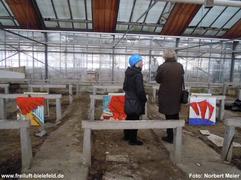 2013 fand freiluft sogar zweimal statt. Der erste Ausstellungsort war am Sonntag, 27. Januar von 11.00-17.00 Uhr die alte Gärtnerei mit ihren Gewächshäusern im Dreieck von Beckhausstraße, Schillerstraße und Engersche Straße in Bielefeld-Schildesche.