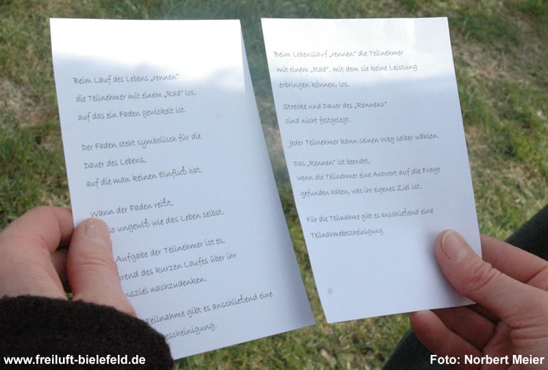 Xenia Gorznys "Rad-Rennen" ist ein skurriler Wettlauf mit Parallen zum Lauf des Lebens auch Lebenslauf. Nur soviel: keiner mußte im Kreis laufen.