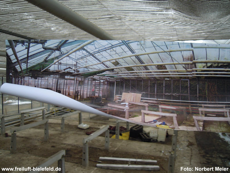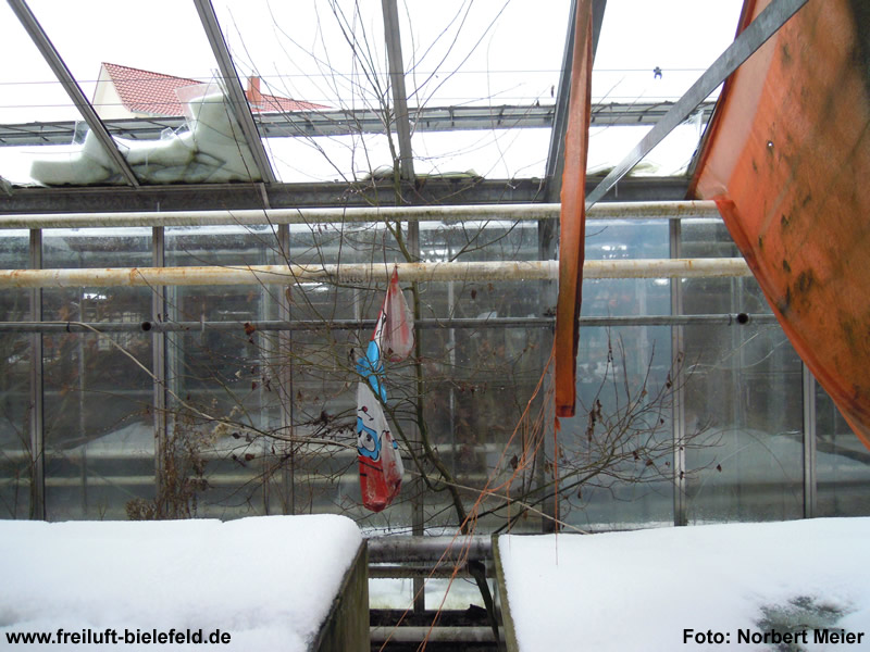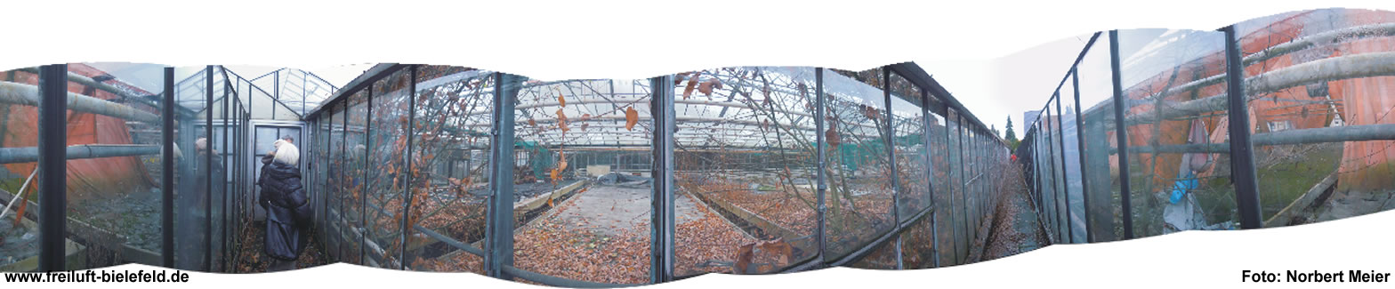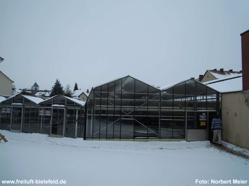 Gewächshäuser im Dreieck von Beckhausstraße, Schillerstraße, Engersche Straße in Bielefeld-Schildesche.