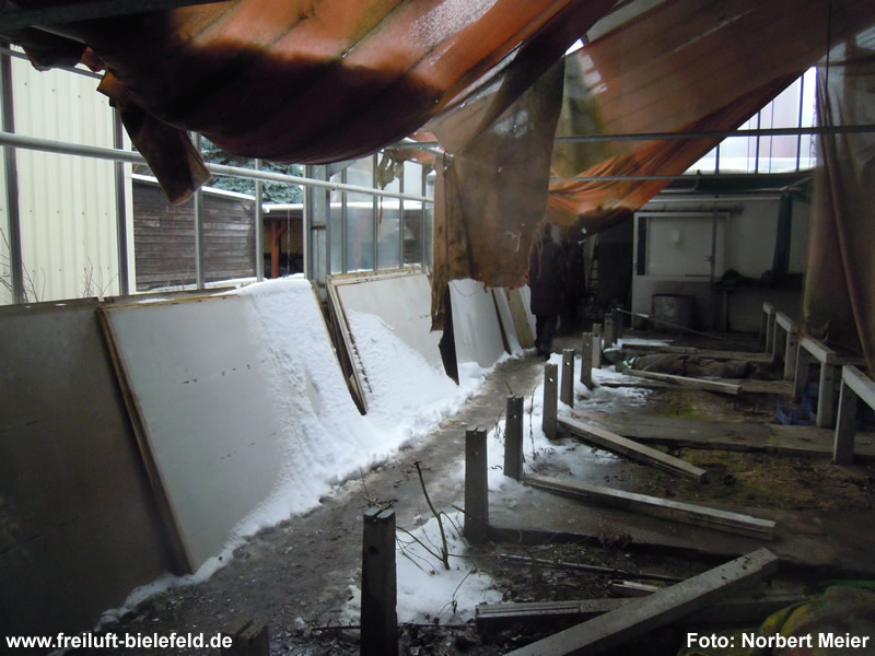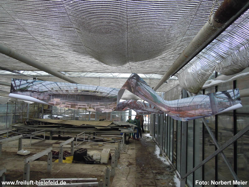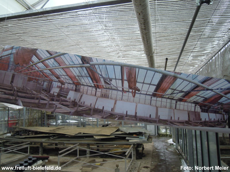 Das an diesem Tag einsetzende Tauwetter und die lockere Aufhängung der Panoramen setze diese dem gleichen Verfall aus wie die der Gewächshäuser.