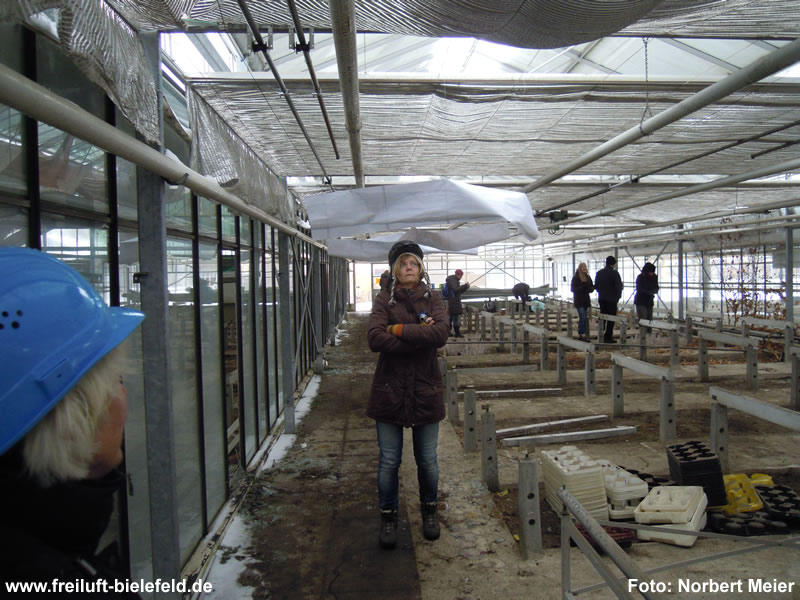 In ihrem Gewächshaus konnte man/frau nur mit Helm (!)