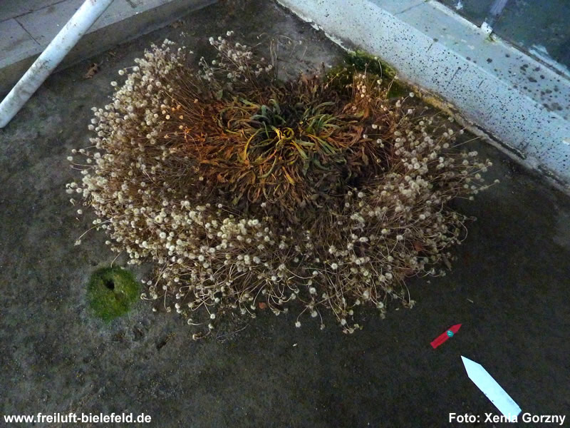 Der Verfall der Gärtnerei wird als Thema aufgegriffen. Tina Tacke wird die Vergänglichkeit in Form von verwelkten Blumen, vertrockneten Blättern und kahlen Bäumen darstellen. Der Tod, der sich auf die Asbestplatten bezieht, wird sichtbat gemacht!