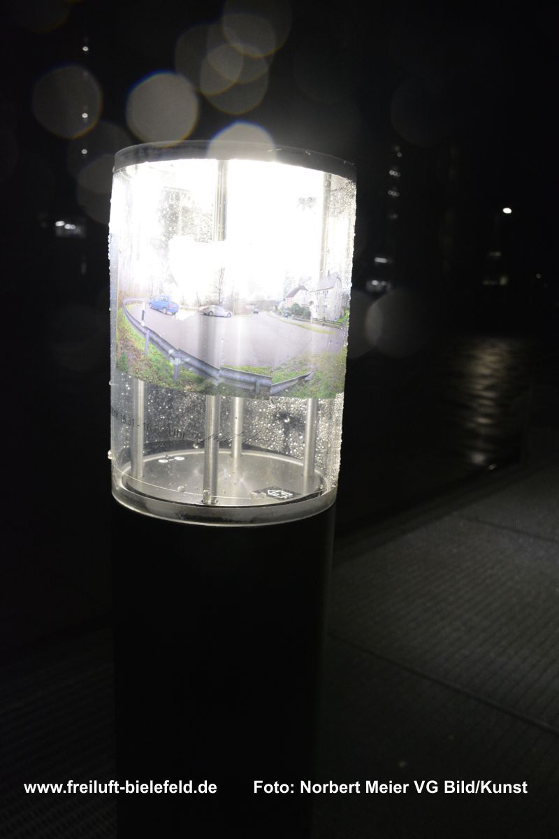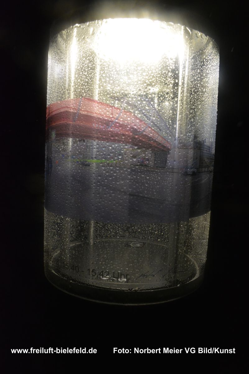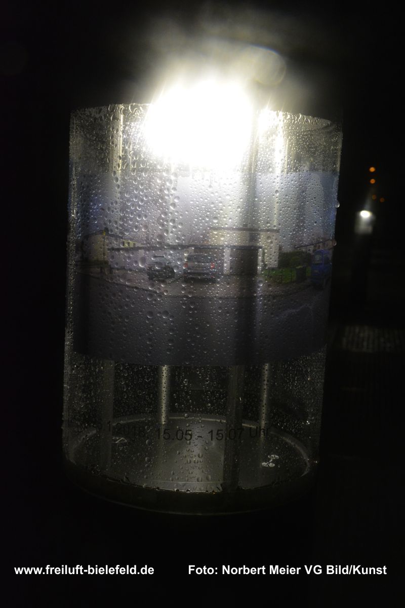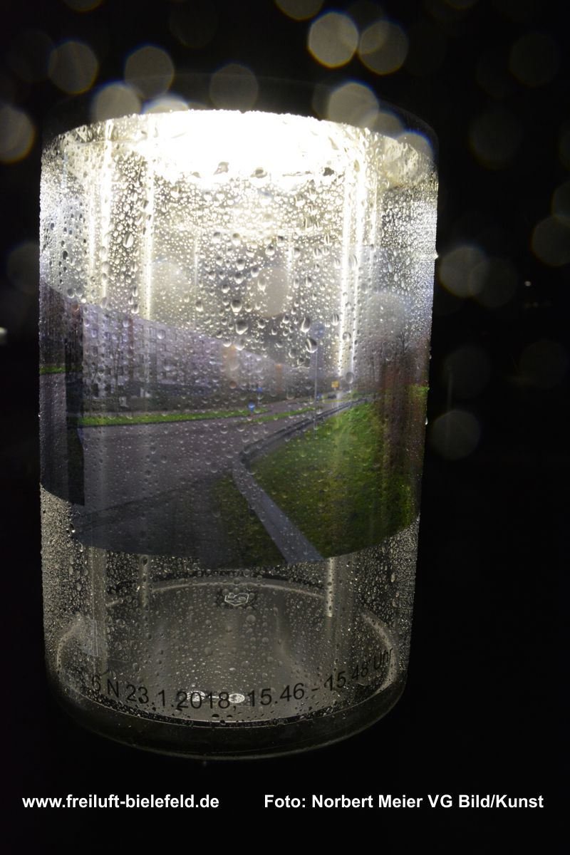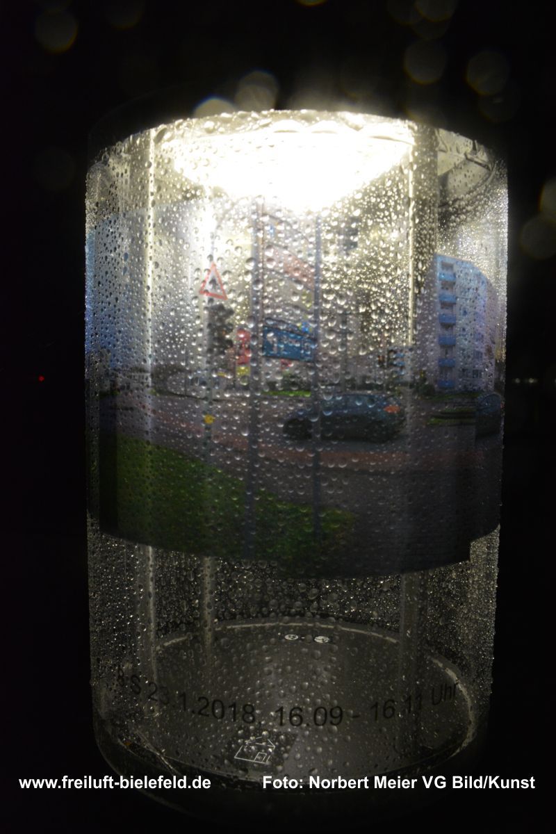 Vergrößertes Abbild von Fixpunkten an der UNI – hier die Leuchten am Gebäude X - auf Bielefeld mit seinen Außenbezirken zurück geholt auf die Leuchten am Gebäude X.