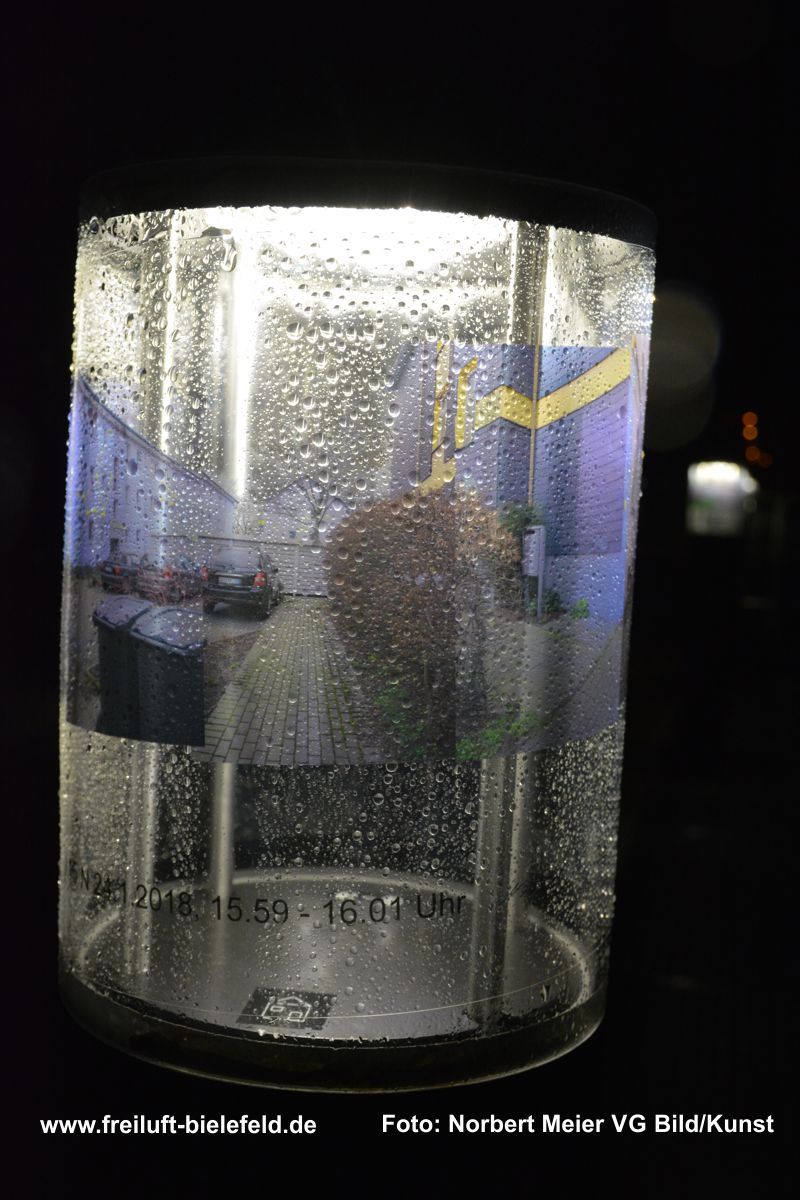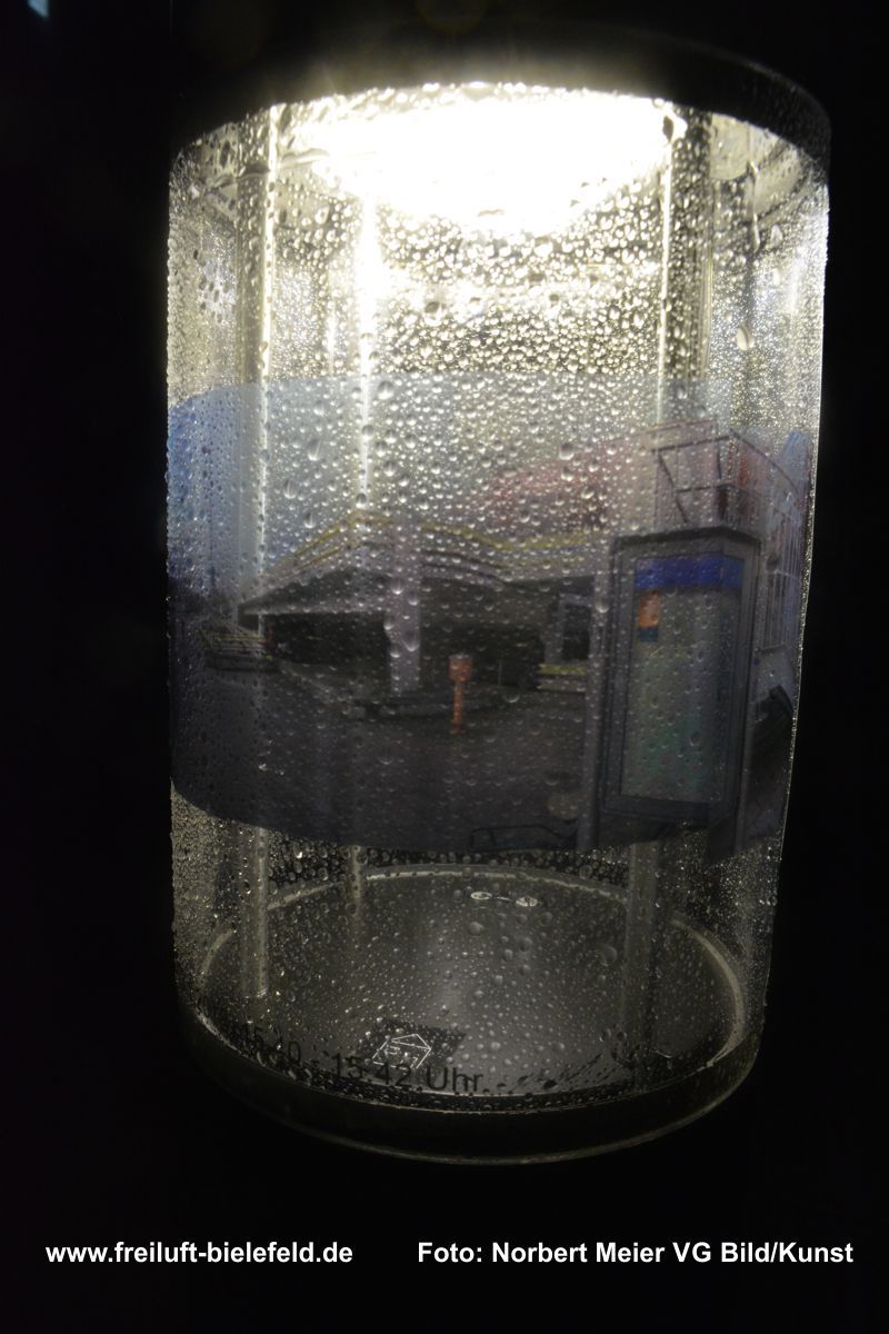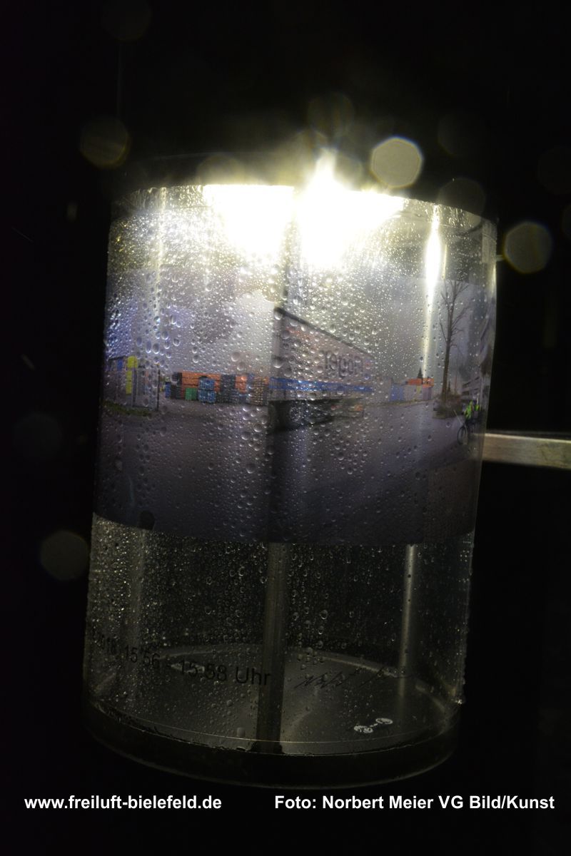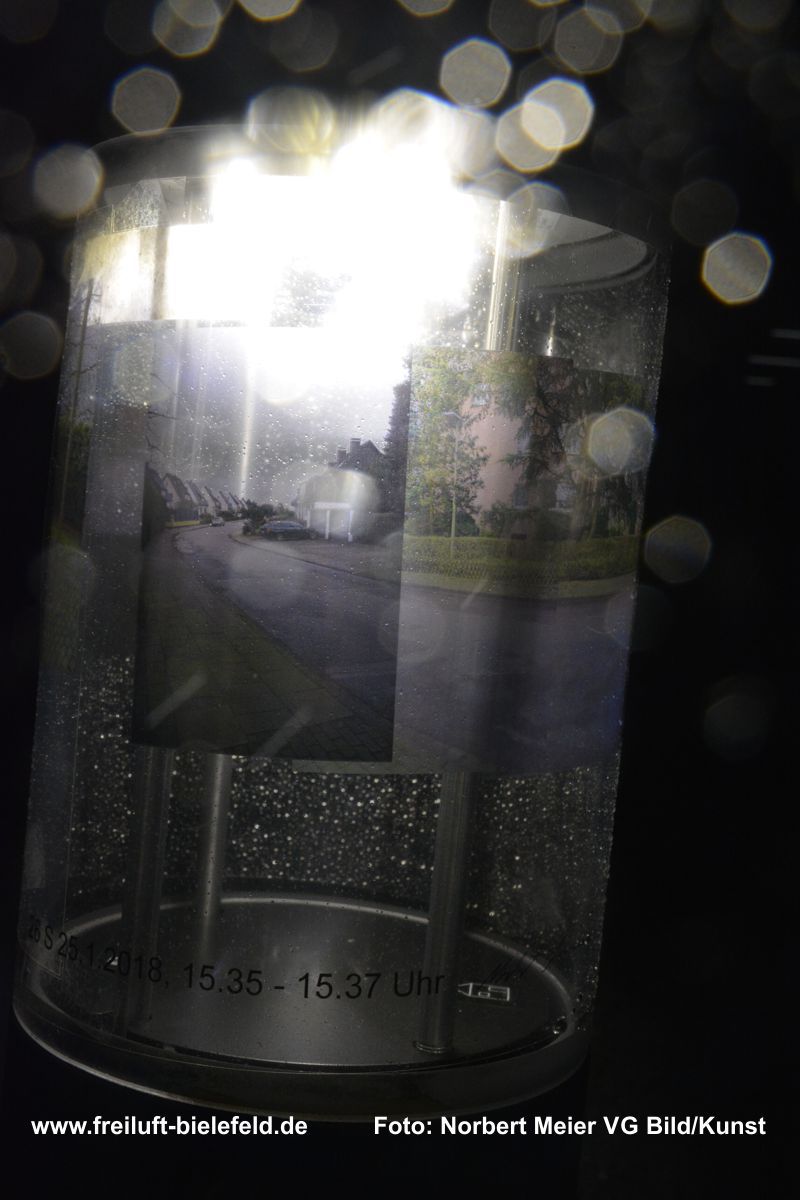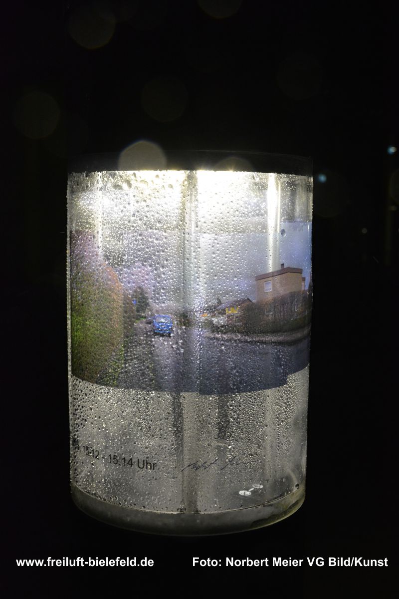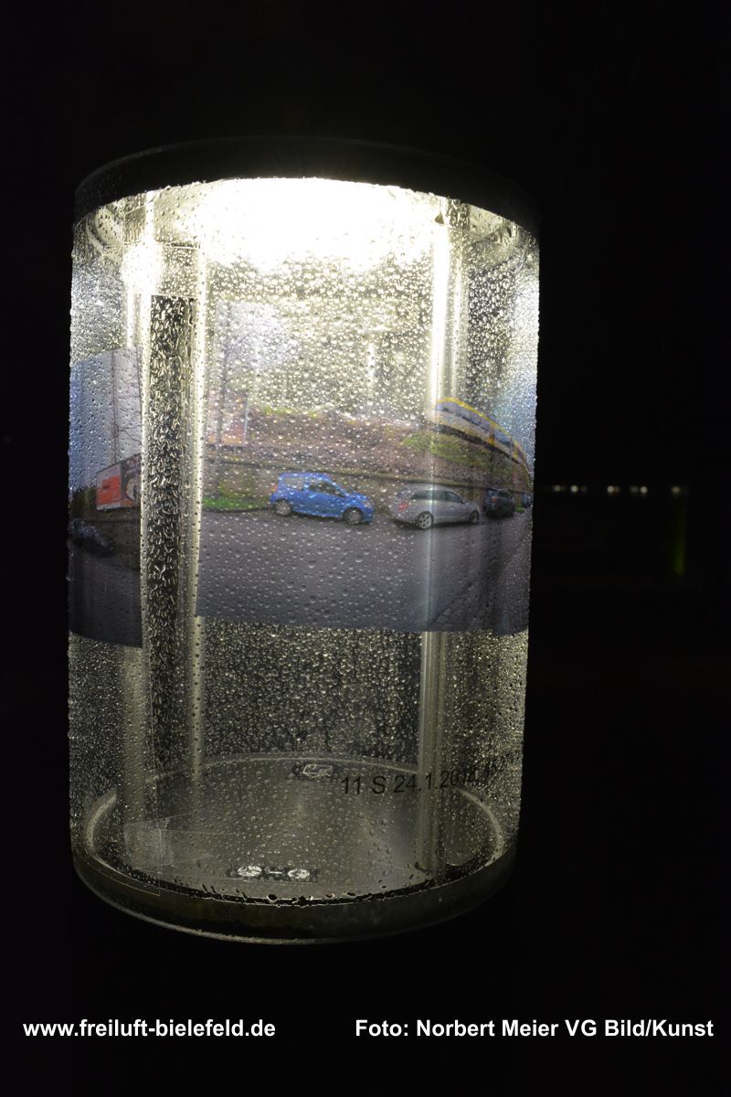Vergrößertes Abbild von Fixpunkten an der UNI – hier die Leuchten am Gebäude X - auf Bielefeld mit seinen Außenbezirken zurück geholt auf die Leuchten am Gebäude X.