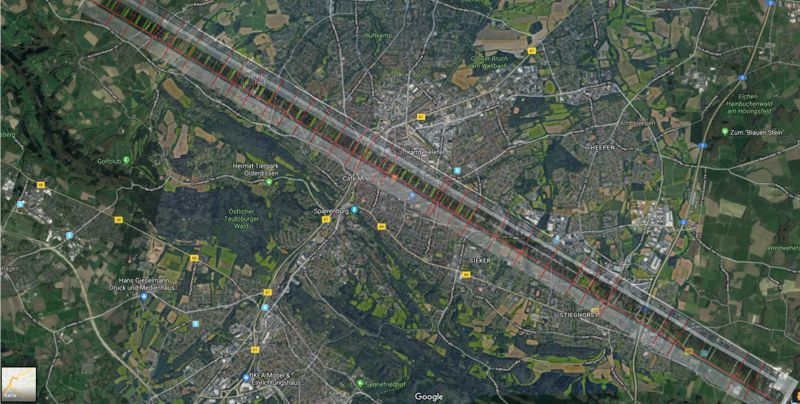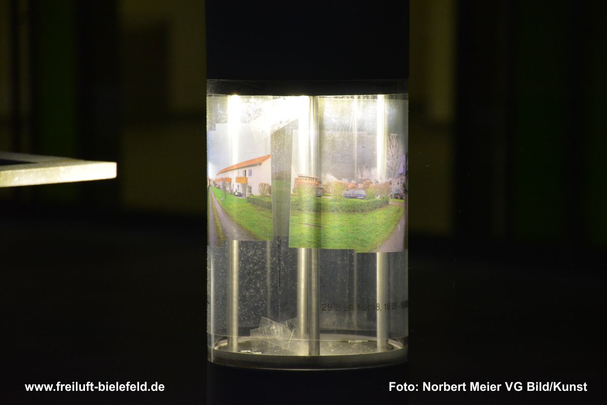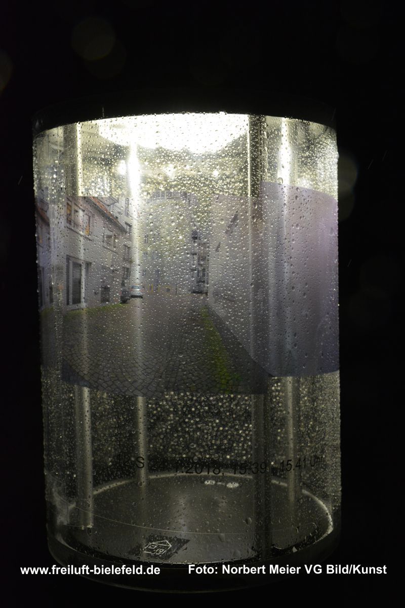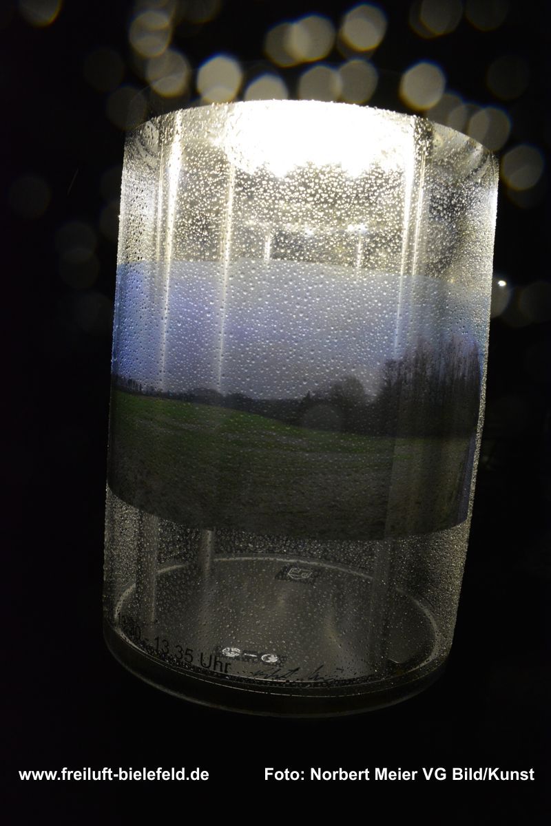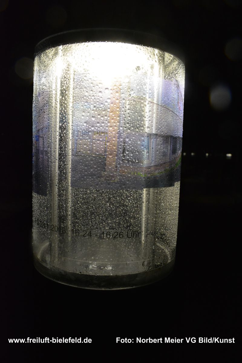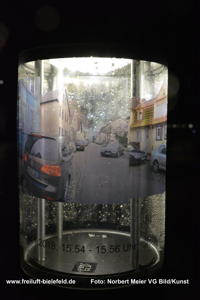 Vergrößertes Abbild von Fixpunkten an der UNI – hier die Leuchten am Gebäude X - auf Bielefeld mit seinen Außenbezirken zurück geholt auf die Leuchten am Gebäude X.