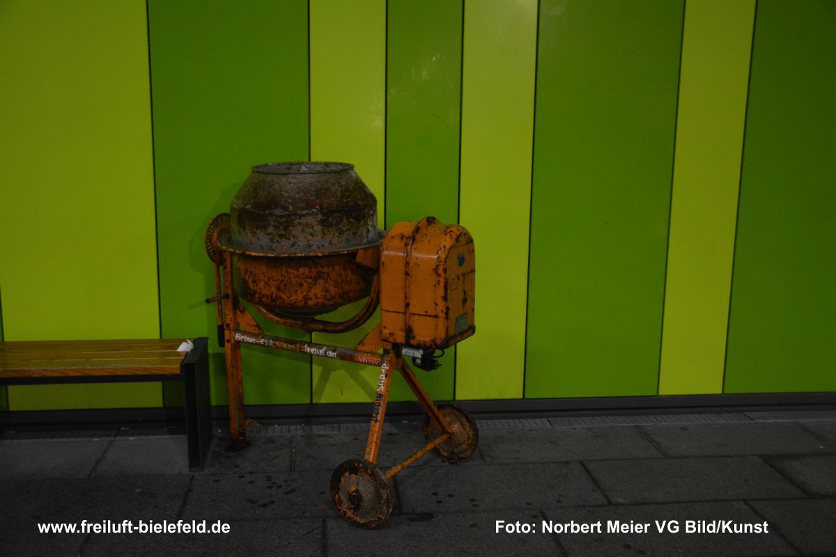 Eine Betonmischmaschine setzt sich mit ihrer immerwährenden grandiosen Mission für den Fortbestand der Gebäude auseinander.