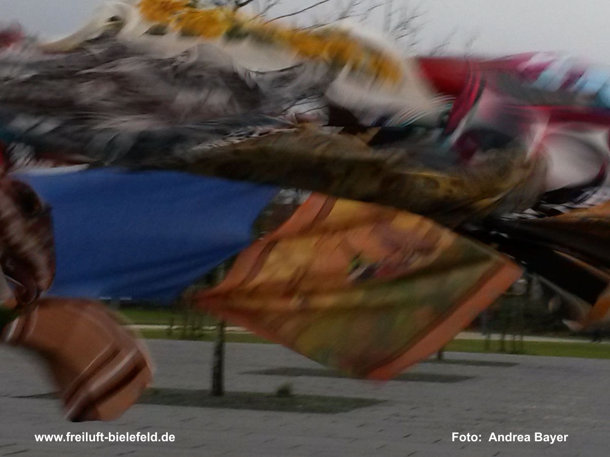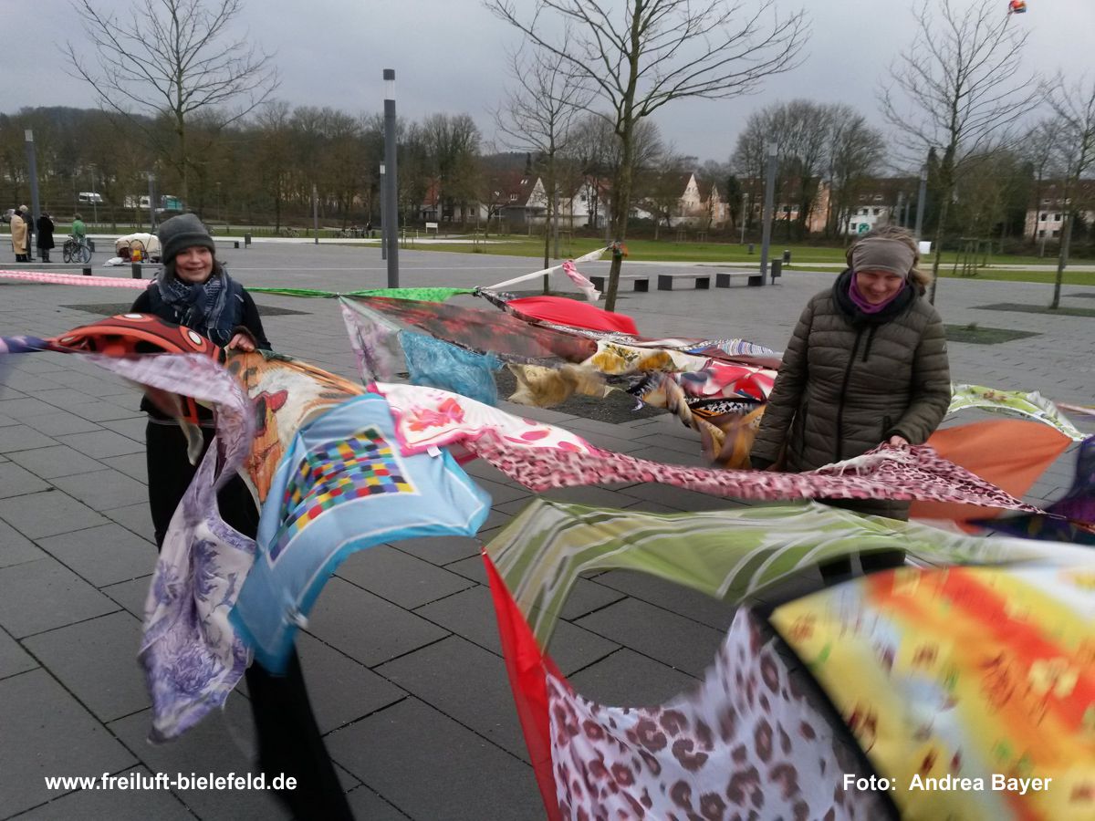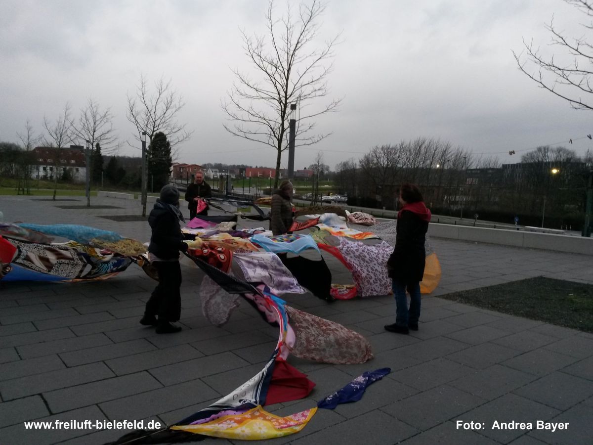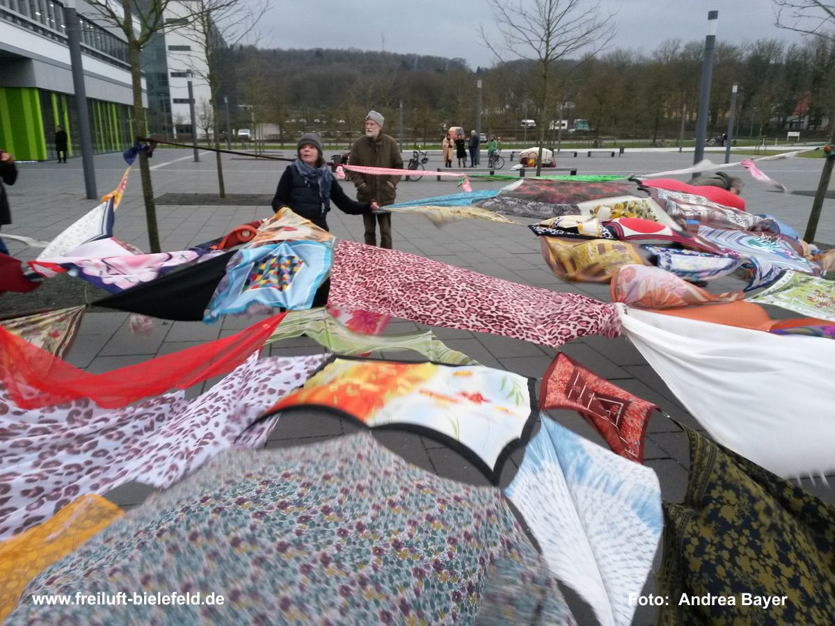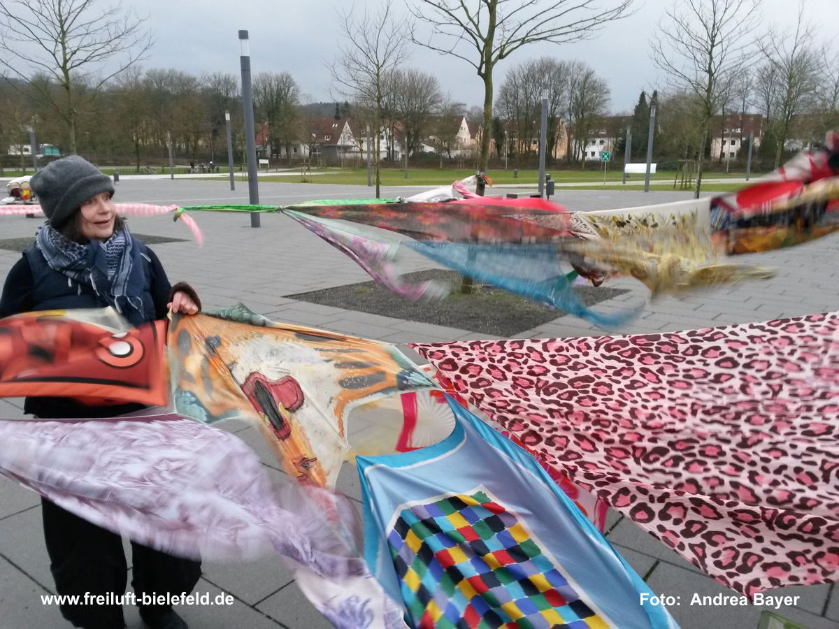 Vielfalt, Farbe, Verknüpfung - alle Tücher fliegen hoch