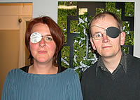 3.6. -2.7.2005 Einzelausstellung mit verschiedenen Perspektivbildern und Fernrohrinstallationen. Die Besucher konnten durch die Fernrohre aus der Galerie zu einem gegenüber montierten Bild oder von außen in die Galerie über Spiegel auf weitere Bilder schauen. Als Einladungskarte verschickte ich eine Augenklappe. Verschiedene Menschen, denen ich direkt die Einladungskarte gab, fotografierte ich mit dem Fotohandy und stellte diese Arbeiten mit aus.