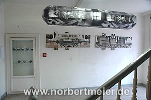 ![]() Wagenhallen, ca. 1916 Foto: Baumann / Stadtarchiv Bielefeld Installation: Norbert Meier, 2006 |