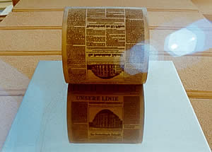 Die Plastik zeigt die erste Druckplatte der ersten Ausgabe nach dem 2.